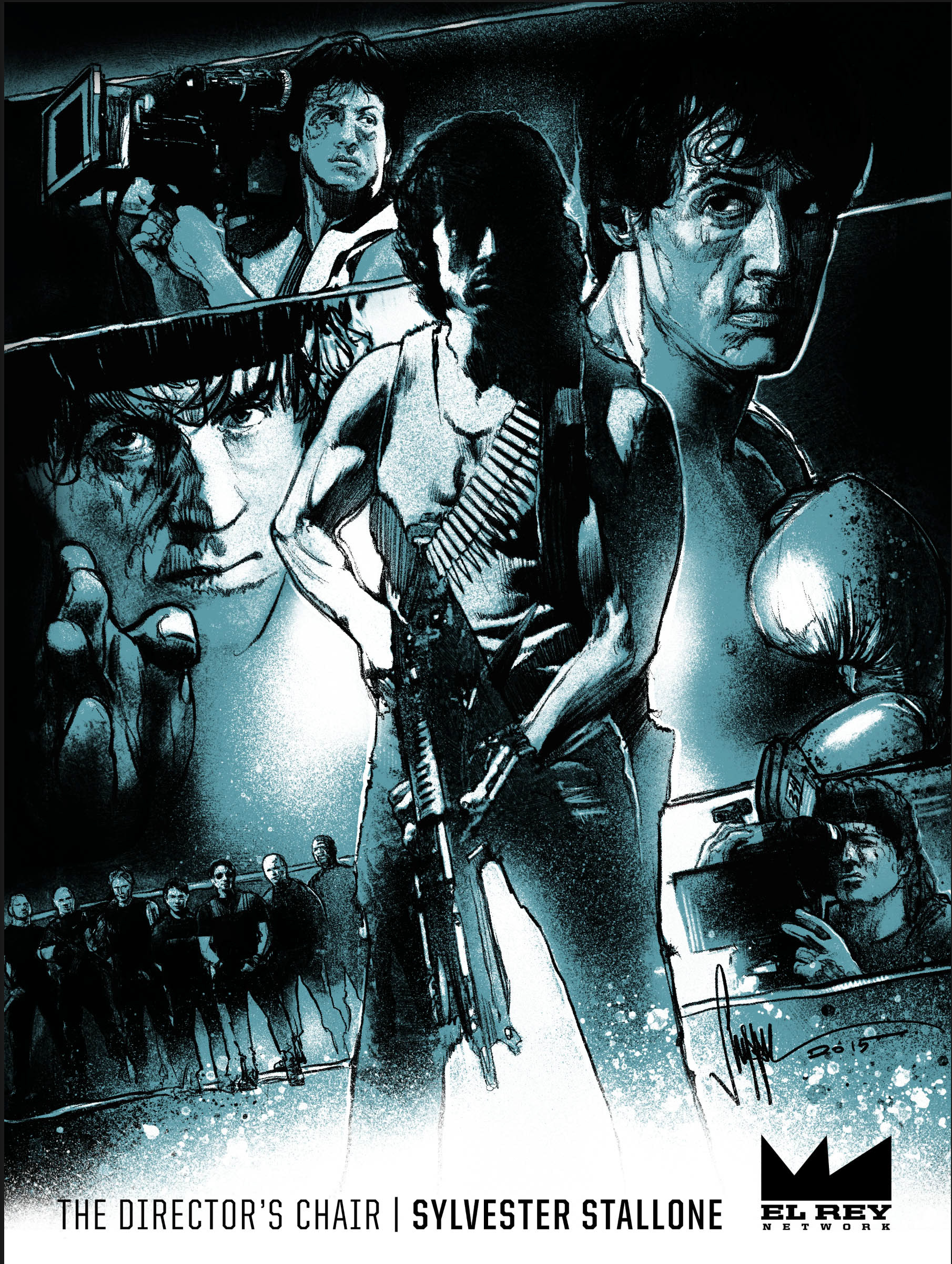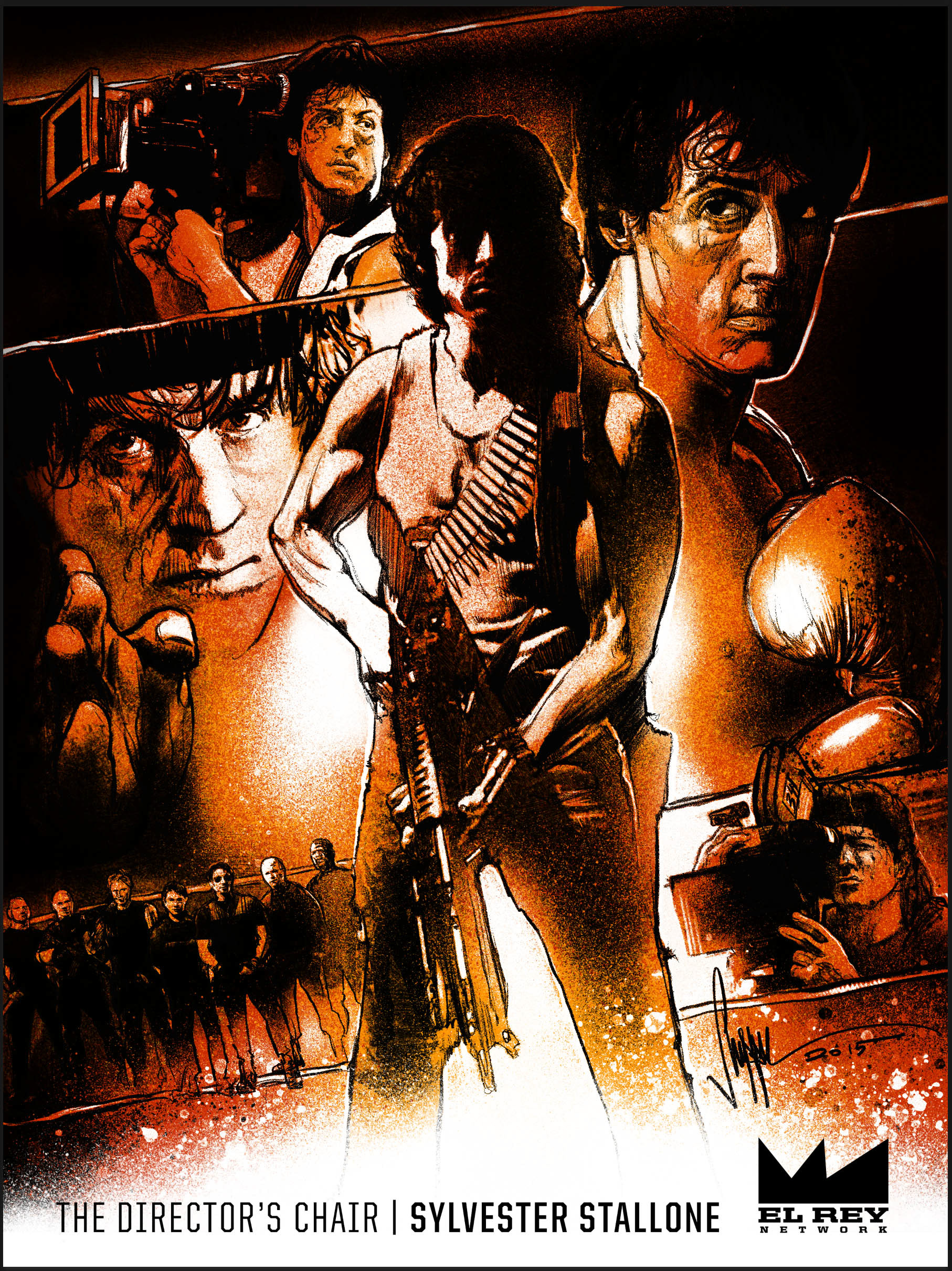 When it came to designing the poster for "The Director’s Chair | Sylvester Stallone" for Robert Rodriguez and his El Rey Network, I really wanted to show off the iconic characters that we all know and love. Characters that I feel have been truly cemented in cinema history. It had to be Stallone's most famous creations, Rocky and Rambo alongside Sly Stallone 'the Director', showing the man 'behind' the camera.